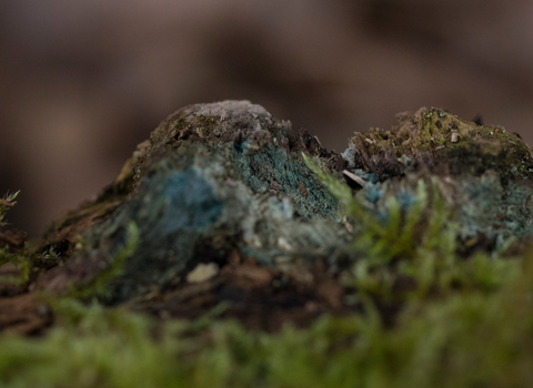 If you were to find a dead branch in the woods stained a beautiful turquoise colour, you can be certain to have found the striking 'green elf cup'. Or evidence of the fungus at least - as it's the mycelium that turns its host this vivid blue green colour. The wood that this fungus infects, known as 'green oak' was highly prized by fine woodworkers in the 18th and 19th centuries, who used this to great effect in their intricate inlays for decorative wooden boxes. Crafting mosaic patterns from different pieces of stained wood like this was the signature craft of woodworkers who made 'Tonbridge Ware' of Kent.How to identify