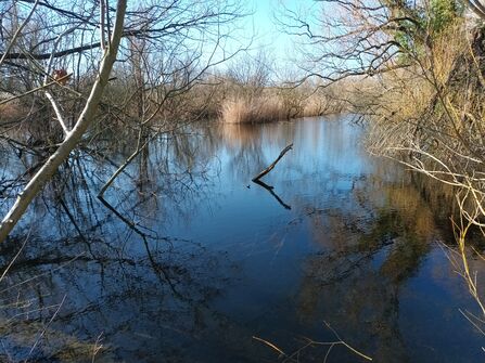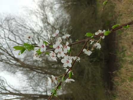 Begwary Brook is a riverside marshland by Wyboston Lakes. Gravel extraction from marshland in the 1960’s created a series or lakes and ponds and little of the former marsh now remains. Access to Begwary Brook is down some long bumpy tracks that are mostly used by people coming to fish in the river (must be a member of the fishing club). A variety of wetland wildlife can be found here, and I spotted a kingfisher as I walked round. The Wildlife Trust doesn’t own the site, and our management is limited to maintaining the paths and controlling invasive Himalayan Balsam (the riverbank path is not part of the site). It’s a very pretty site, and blackthorn was coming into flower.