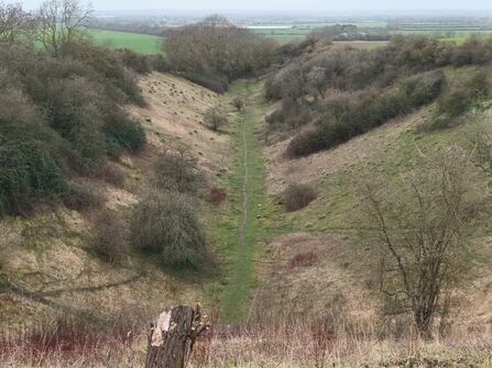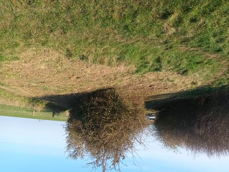 Last on my route was Old Warden Tunnel. I have already done a few volunteer tasks here this year, so I am familiar with the reserve. The site is the top of a disused rail tunnel and the cutting leading up to the tunnel. It’s comprised of woodland, grassland, and scrubland. The tunnel is blocked off to protect the bats that roost there. It is an offense to disturb roosting bats. The view down the cutting is fantastic! Parts of the site are grazed, so I walked the entire perimeter and ‘wobbled’ every fence post to see if it needed replacing. Some were a little loose due to changes in the soil but only two perimeter posts need replacing. There is a cross-fence in the middle of the reserve and five of those posts need replacing too. We’ll be sorting them in April. I checked the tunnel top woodland paths and found a few trees that had come down due to wind. A few were small enough for me to clear with my little folding saw, but two will need a bigger saw. They’re stable for now, though. With that, I had just enough time left to head home and log my checks and findings in our records.