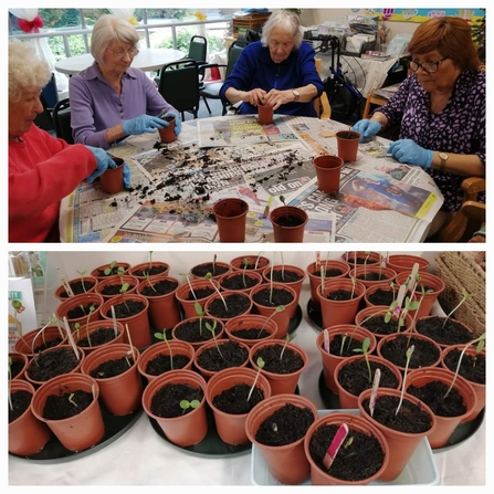 Headway East Northants also visited in May, and they started with the sunflower seeds too. Let`s see whose flowers will grow the tallest (it's not really a competition though…). They also created wooden planters, and we put in some of the seedlings they had sown earlier in March-we have lovely marigolds and calendulas- they will be in bloom very soon! The group members have also sown some runner beans and planted out cucumber and butternut squash plants. They had such a nice time, one of the clients even decided to apply for volunteering with us!