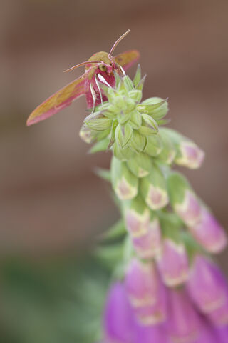Hawkmoth on foxglove by Tom Marshall