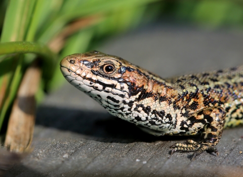 Living up to its name, the common lizard is the UK's most common and widespread reptile; it is the only reptile native to Ireland. It is found across many habitats, including heathland, moorland, woodland and grassland, where it can be seen basking in sunny spots.Also known as the 'viviparous lizard', the common lizard is unusual among reptiles as it incubates its eggs inside its body and 'gives birth' to live young rather than laying eggs. Adults emerge from hibernation in spring, mating in April and May, and producing three to eleven young in July.